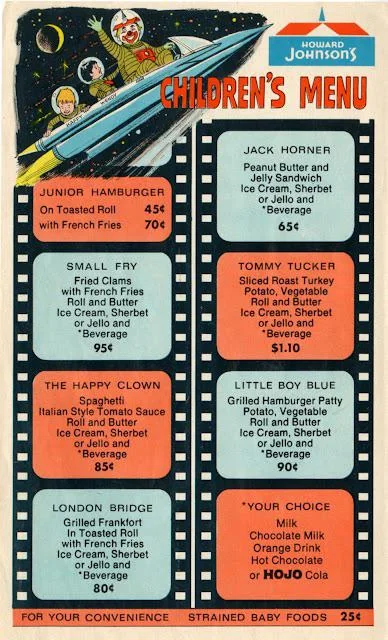 Howard Johnson's 2001: A Space Odyssey children's menu:
