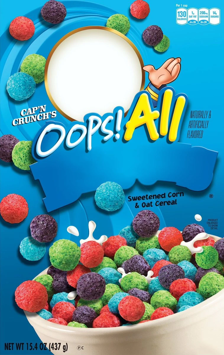 | “ | We asked Cap'n Crunch to produce an episode of our show. You know he often makes the mistake of 'oops! all berries!' It happened here. | ” |