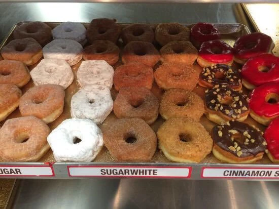 The Doughboys tried a big variety of Do-nuts on this trip: Cinnamon Sugar, Devils Food, Maple Iced, Chocolate Iced, Chocolate Iced Nut, Orange Sprinkle, Blueberry Filled, Strawberry Filled, Cream Filled, Chocolate Cream Filled, Chocolate Iced Cake, and the consensus favorite: Buttermilk Cake Glazed.