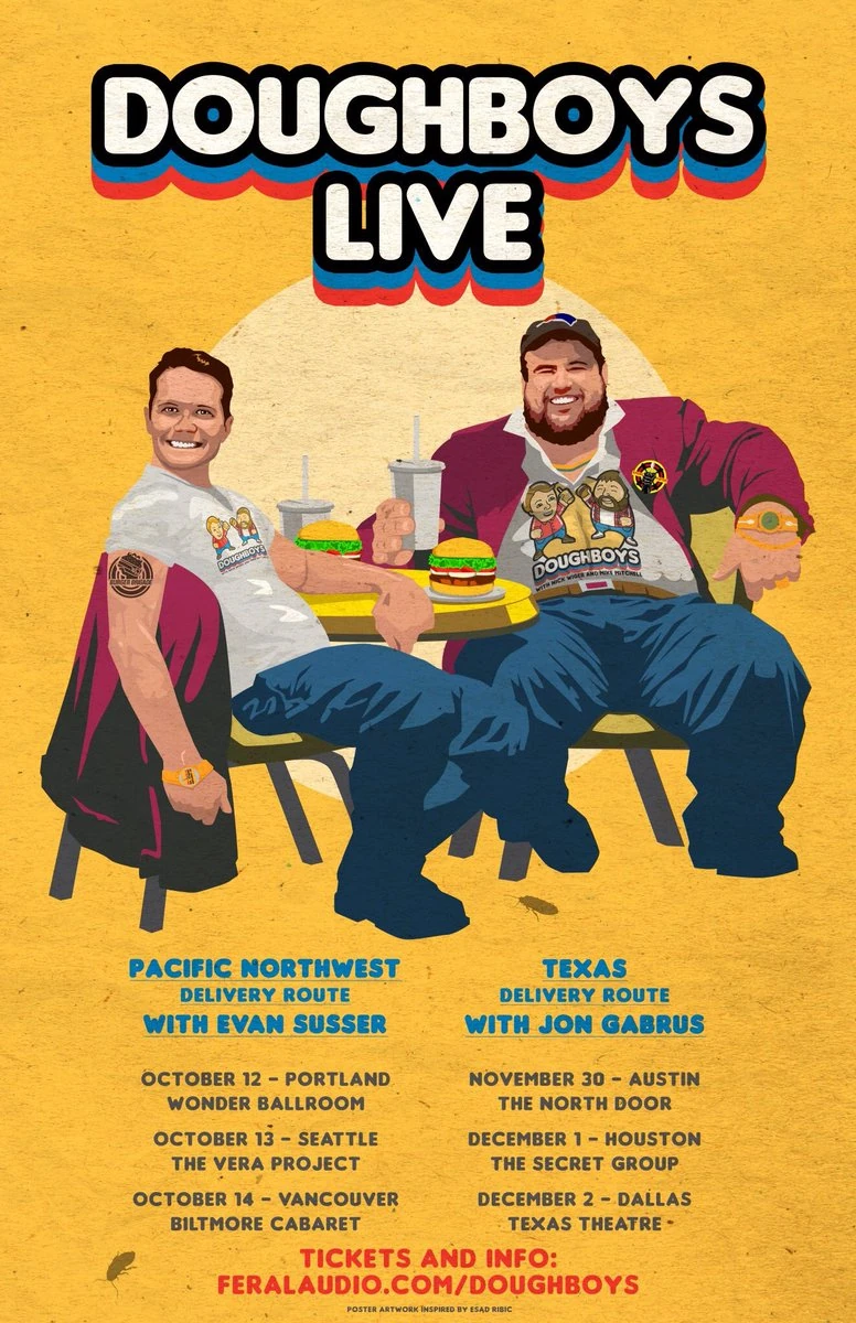 On the second stop of their Texas tour, Mitch and Wiger are again joined by Jon Gabrus (Comedy Bang! Bang!, Raised by TV) for a raucous discussion of local sweet treat/kolache chain Shipley Do-Nuts.